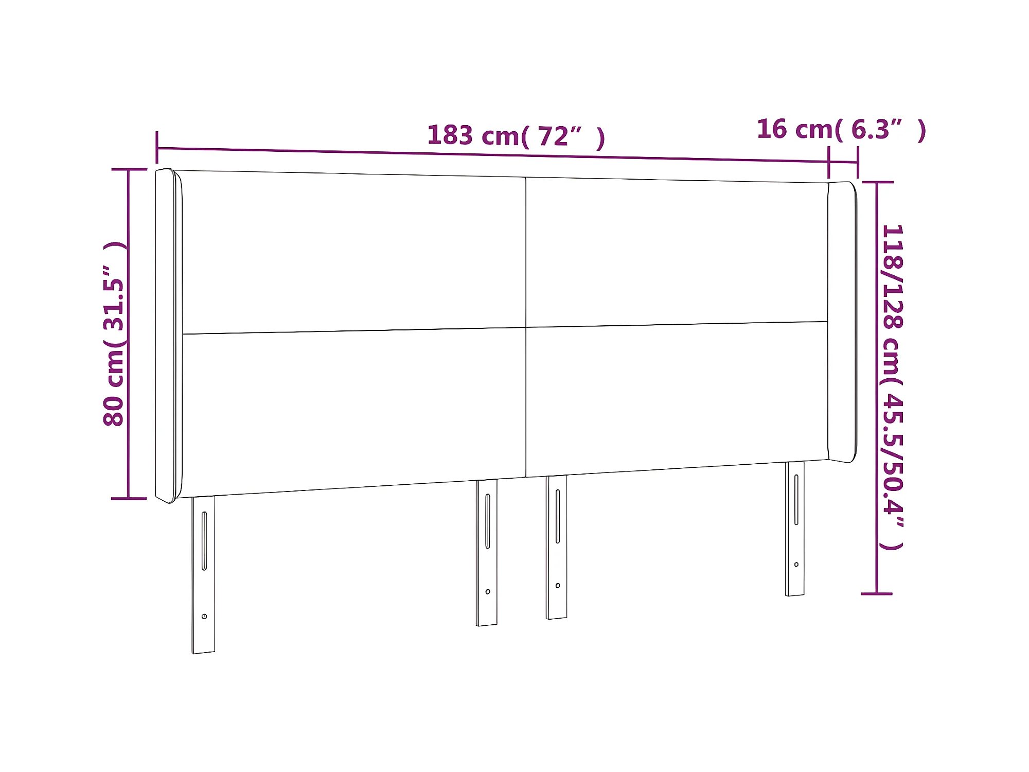 Tête de lit avec oreilles Noir 183x16x78/88 cm Similicuir