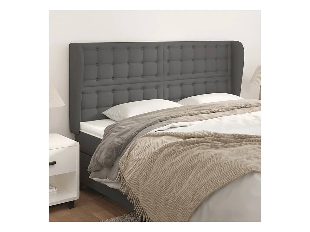 Tête de lit avec oreilles Gris 163x16x118/128 cm Similicuir POI77258 BonneVie Meuble