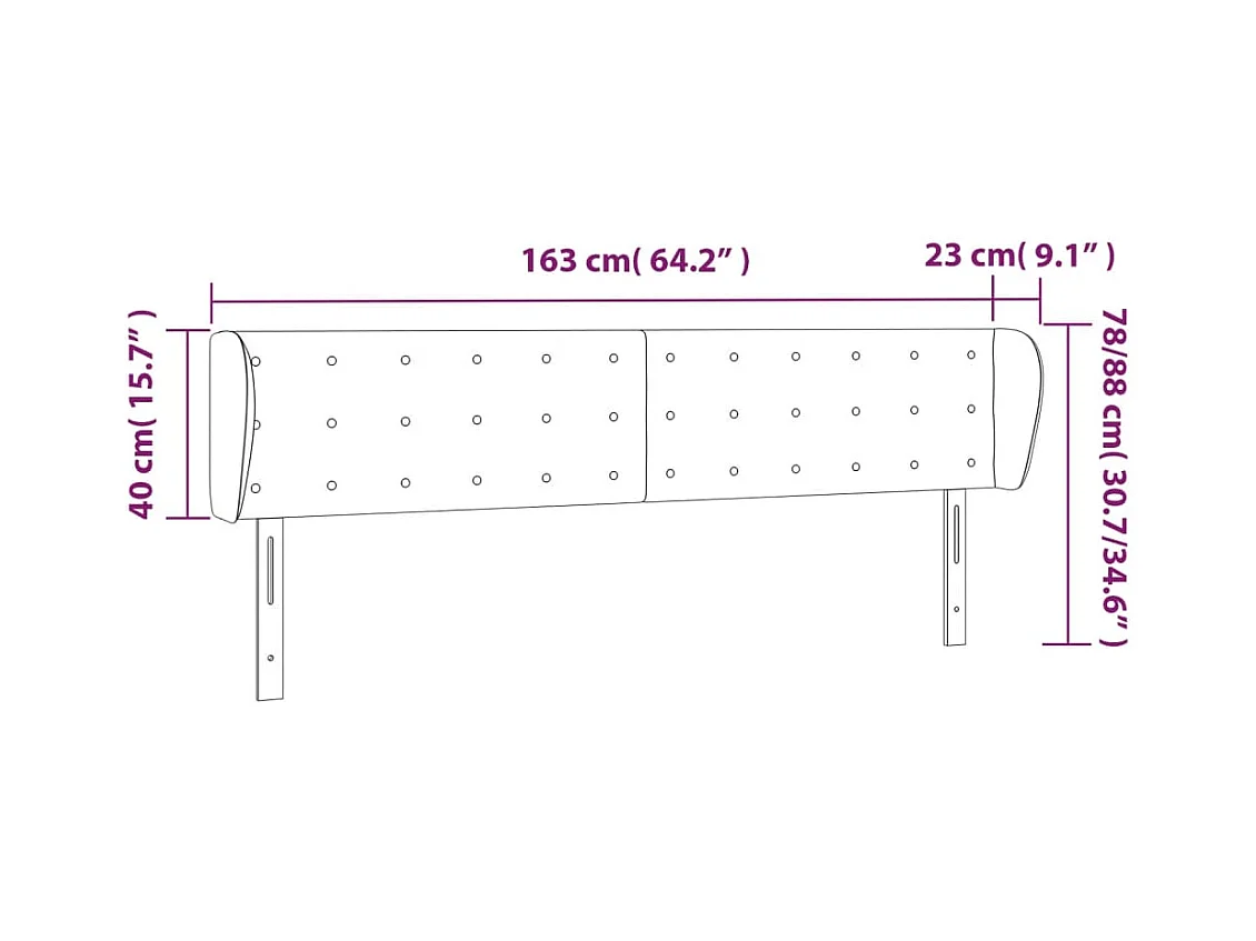Tête de lit avec oreilles Gris foncé 163x23x78/88 cm Velours