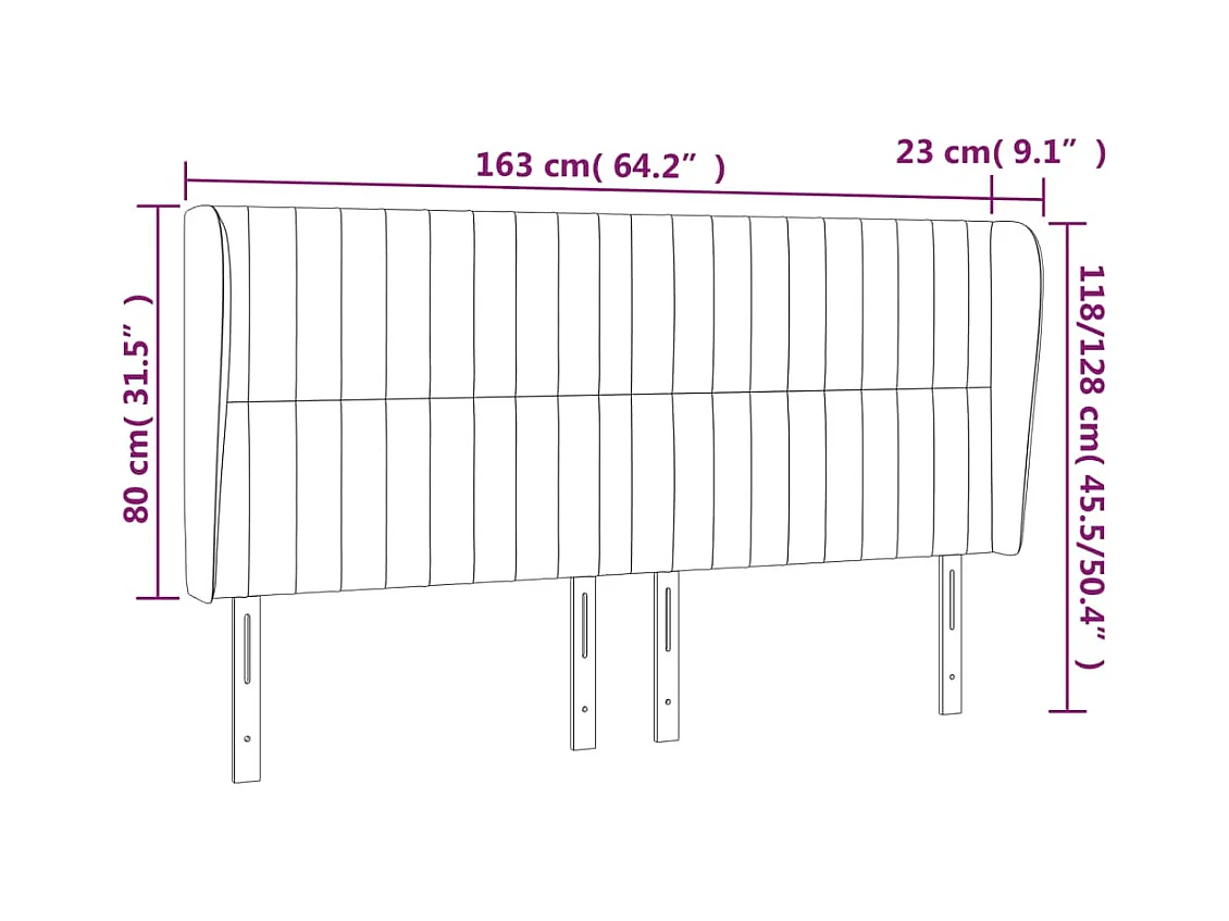 Tête de lit avec oreilles Gris foncé 163x23x118/128 cm Velours