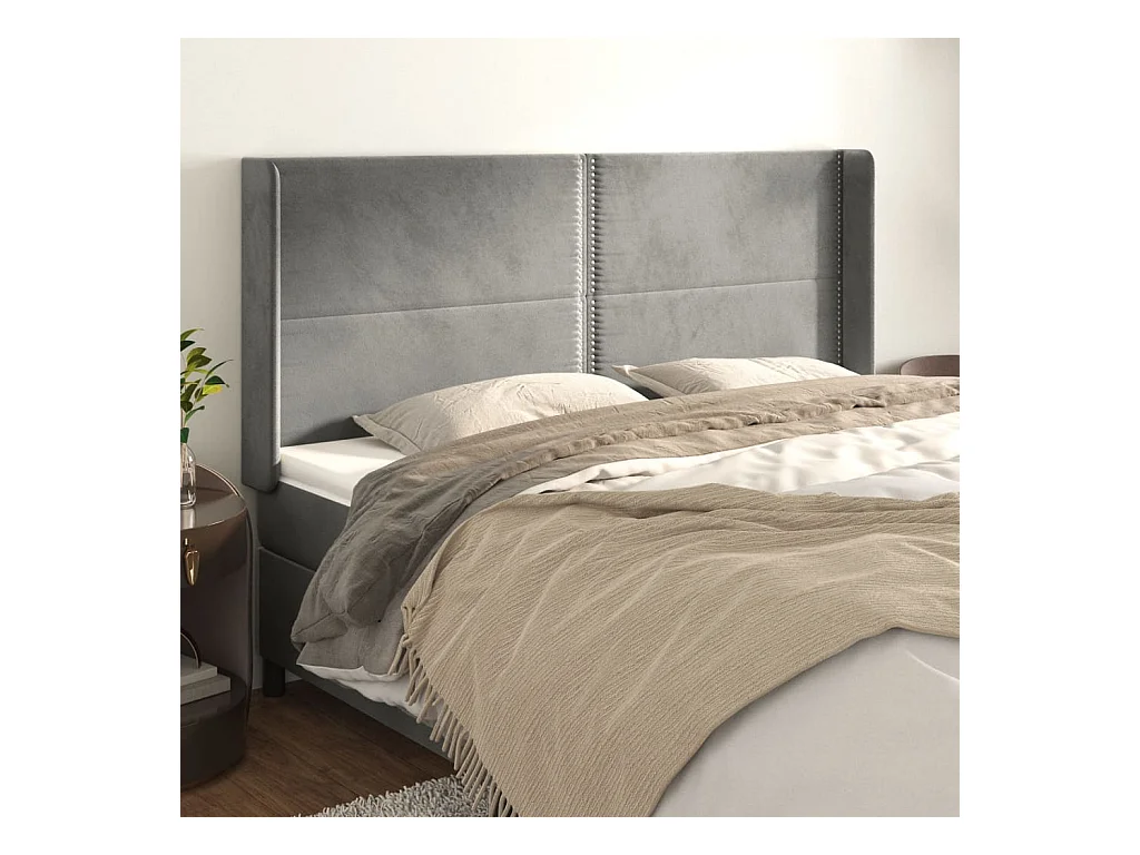 Tête de lit avec oreilles Gris clair 183x16x118/128 cm Velours POI67417 BonneVie Meuble