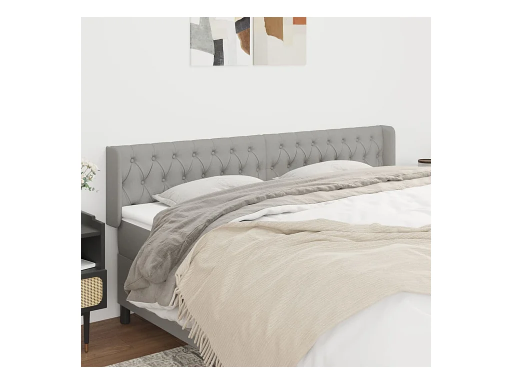 Tête de lit avec oreilles Gris clair 203x16x78/88 cm Tissu POI81195 BonneVie Meuble