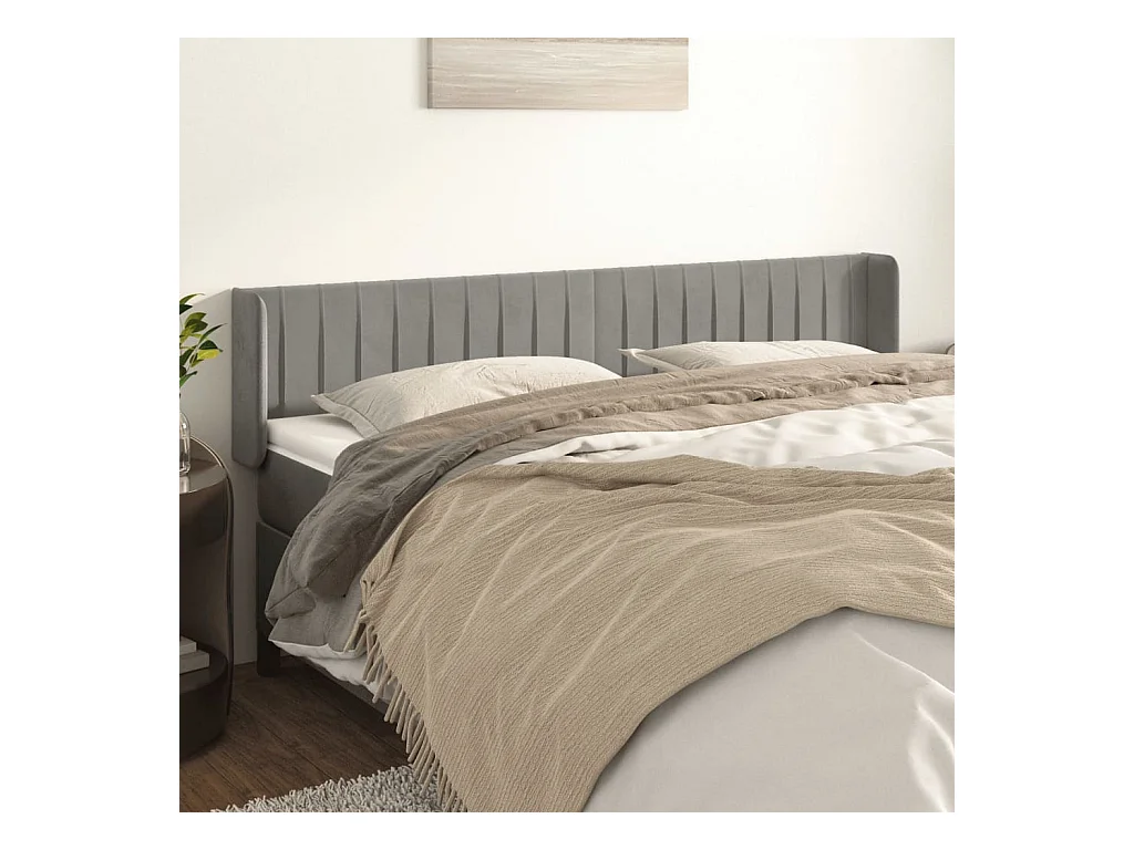 Tête de lit avec oreilles Gris clair 183x16x78/88 cm Velours