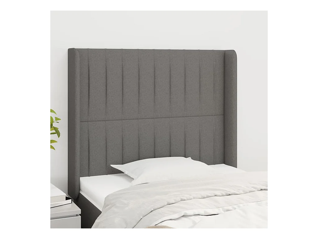 Tête de lit avec oreilles Gris foncé 103x16x118/128 cm Tissu POI72579 BonneVie Meuble