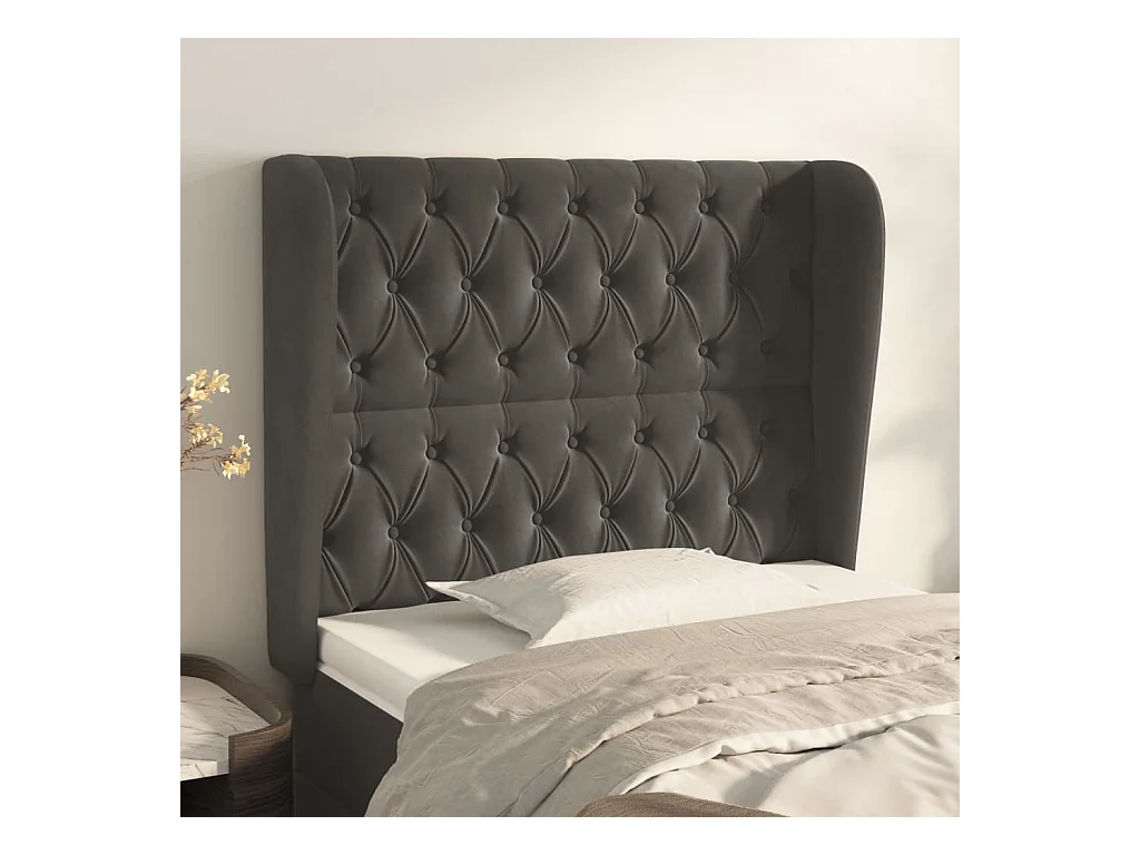 Tête de lit avec oreilles Gris foncé 103x23x118/128 cm Velours POI30574 BonneVie Meuble