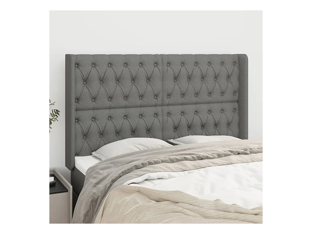 Tête de lit avec oreilles Gris foncé 203x16x118/128 cm Tissu POI93916 BonneVie Meuble