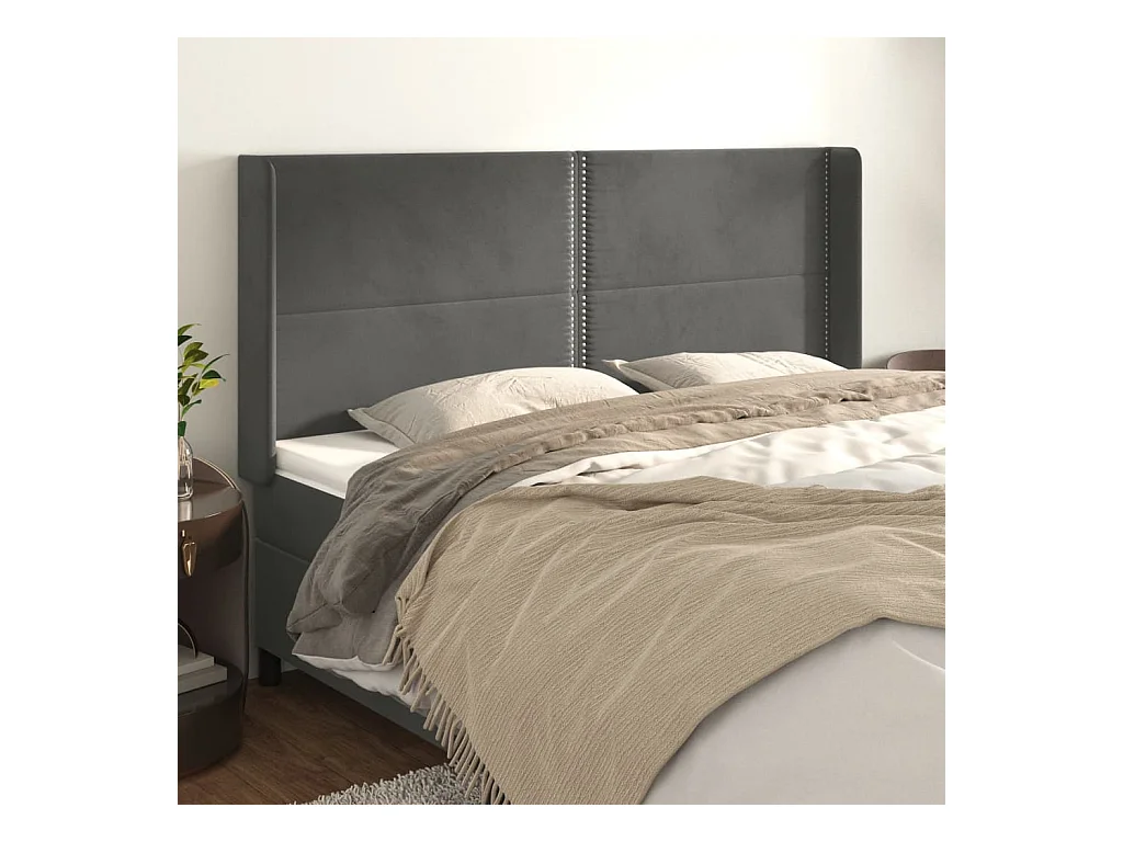 Tête de lit avec oreilles Gris foncé 183x16x118/128 cm Velours POI29497 BonneVie Meuble