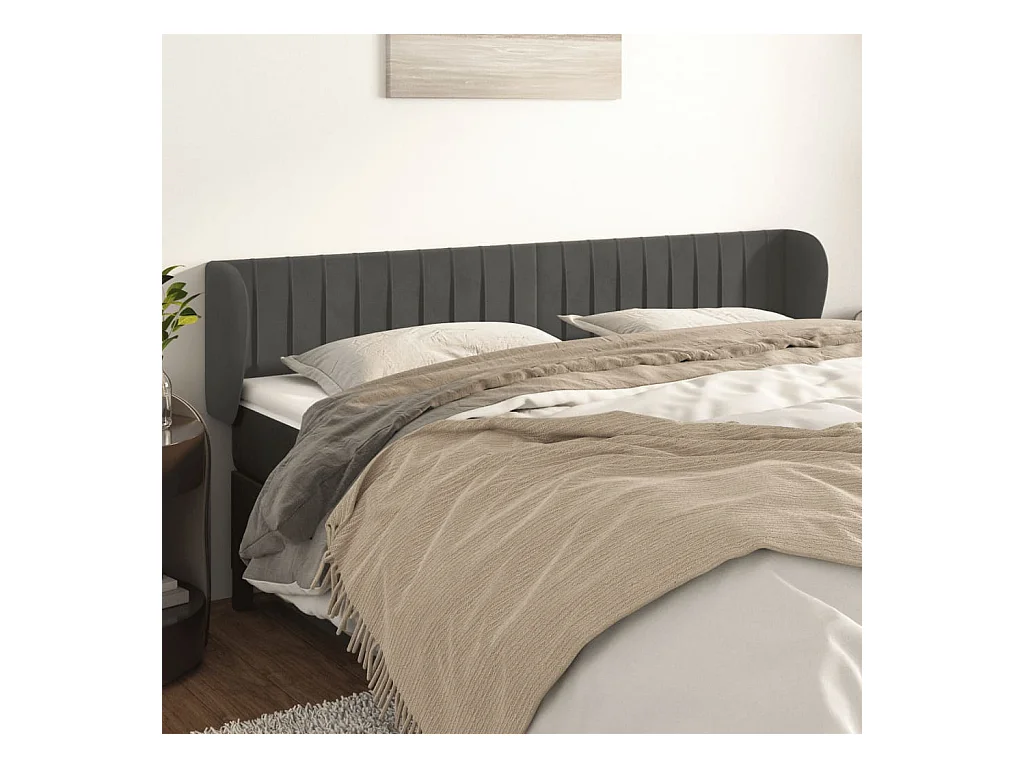 Tête de lit avec oreilles Gris foncé 183x23x78/88 cm Velours