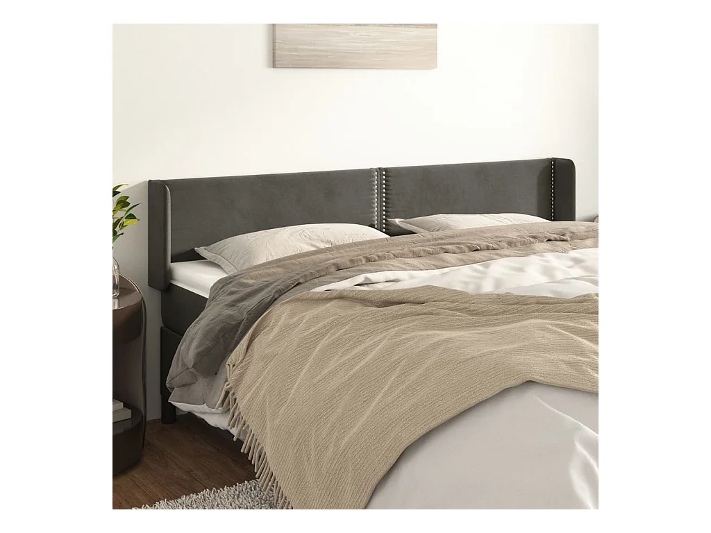 Tête de lit avec oreilles Gris foncé 203x16x78/88 cm Velours