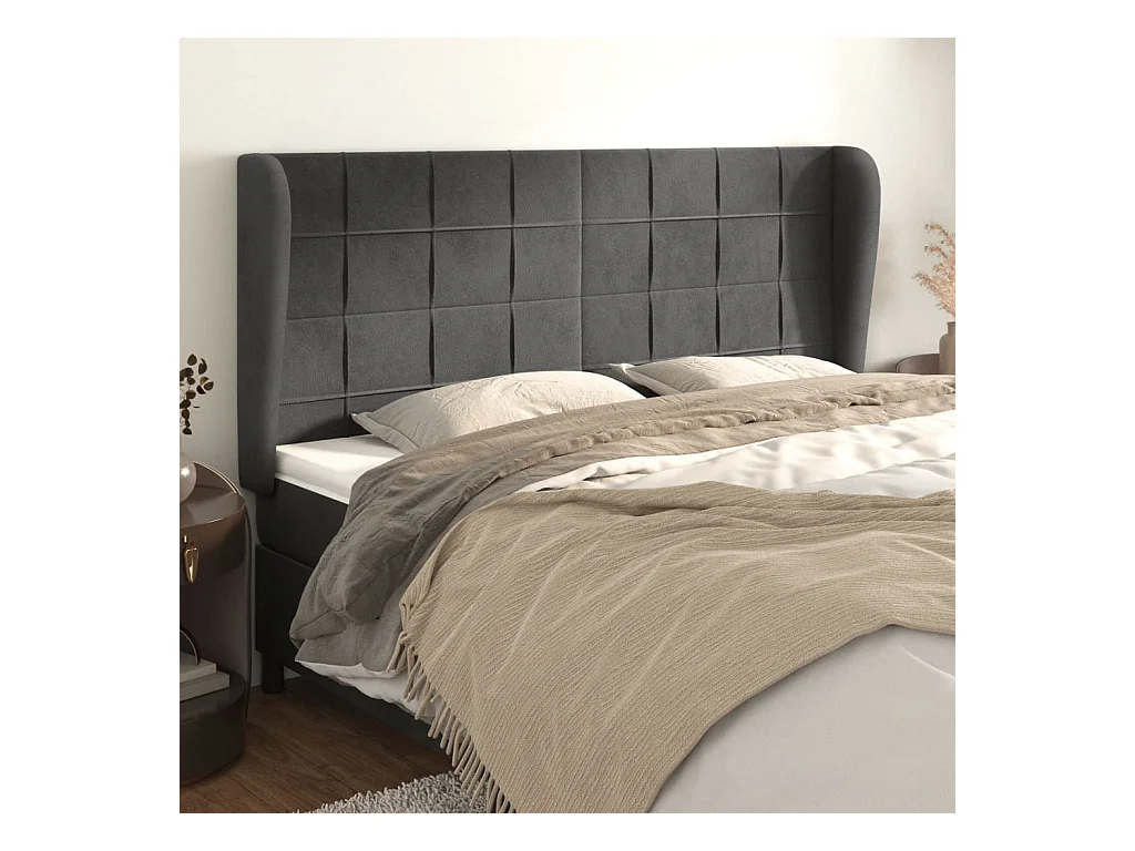 Tête de lit avec oreilles Gris foncé 203x23x118/128 cm Velours POI40526 BonneVie Meuble