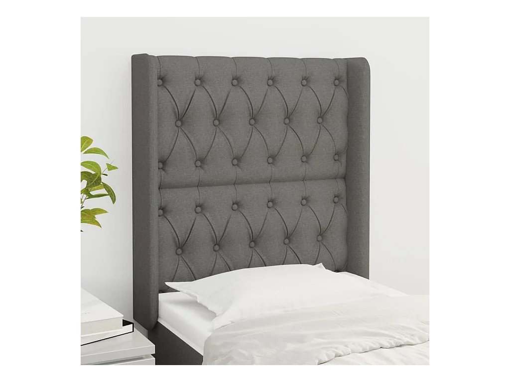 Tête de lit avec oreilles Gris foncé 93x16x118/128 cm Tissu POI46990 BonneVie Meuble
