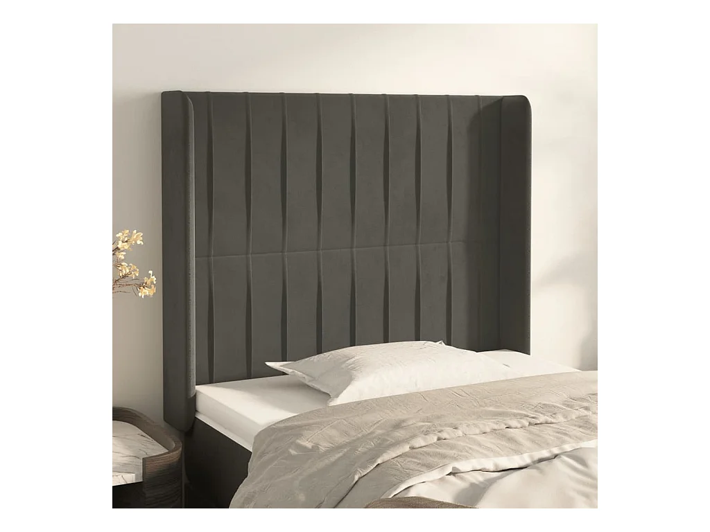 Tête de lit avec oreilles Gris foncé 93x16x118/128 cm Velours