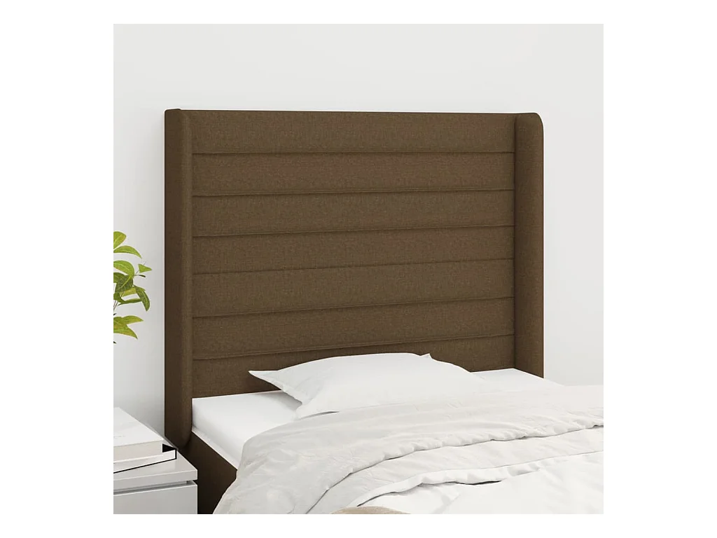 Tête de lit avec oreilles Marron Foncé 103x16x78/88 cm Tissu POI29376 BonneVie Meuble