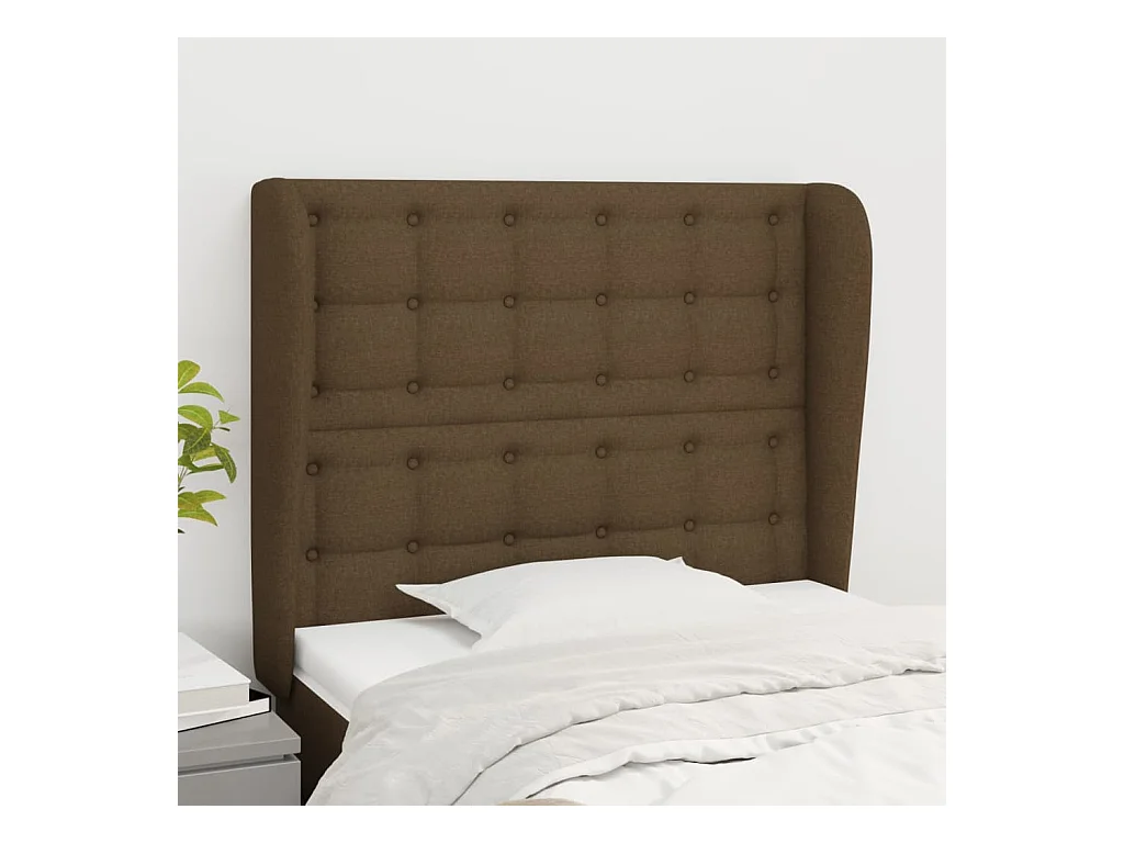 Tête de lit avec oreilles Marron foncé 93x23x118/128 cm Tissu