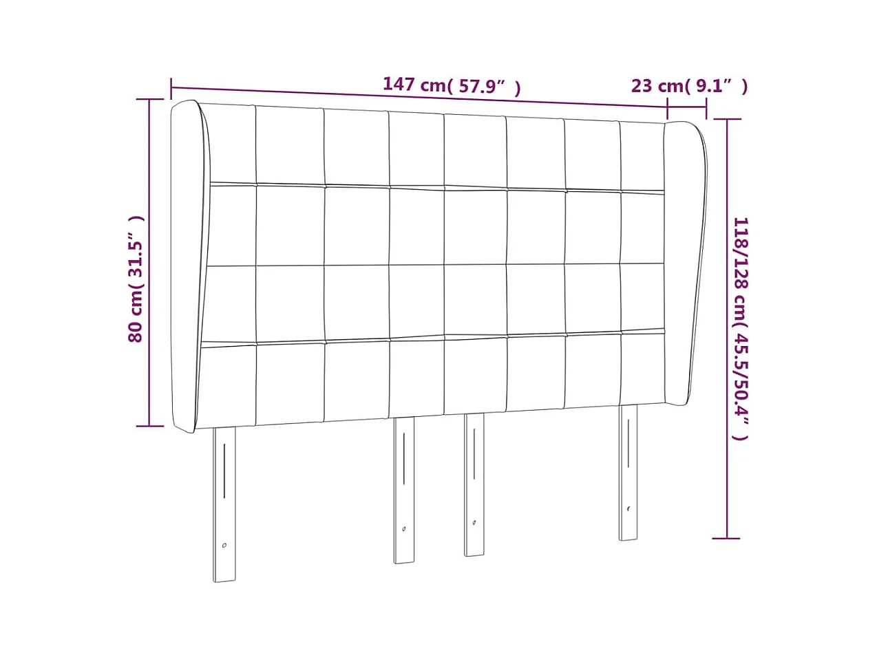 Tête de lit avec oreilles Marron foncé 147x23x118/128 cm Tissu