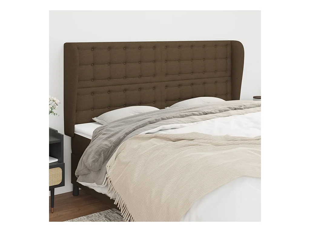 Tête de lit avec oreilles Marron foncé 163x16x118/128 cm Tissu