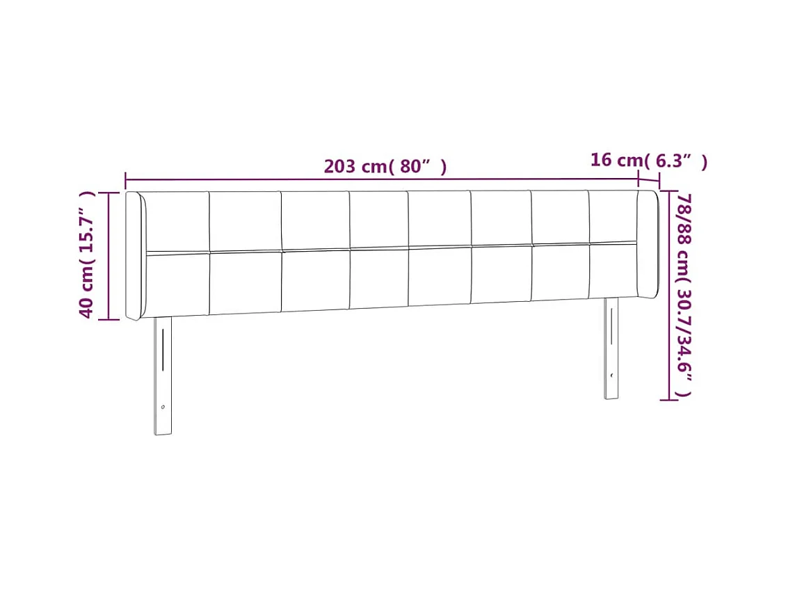 Tête de lit avec oreilles Marron Foncé 203x16x78/88 cm Tissu