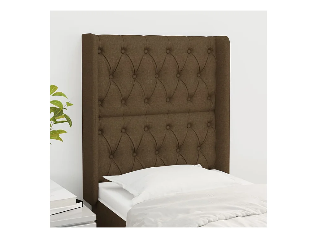 Tête de lit avec oreilles Marron foncé 93x16x118/128 cm Tissu POI49163 BonneVie Meuble