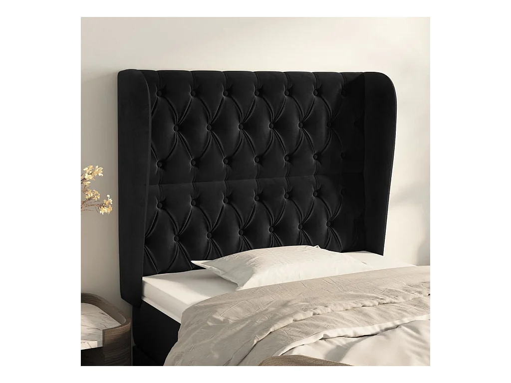 Tête de lit avec oreilles Noir 103x23x118/128 cm Velours