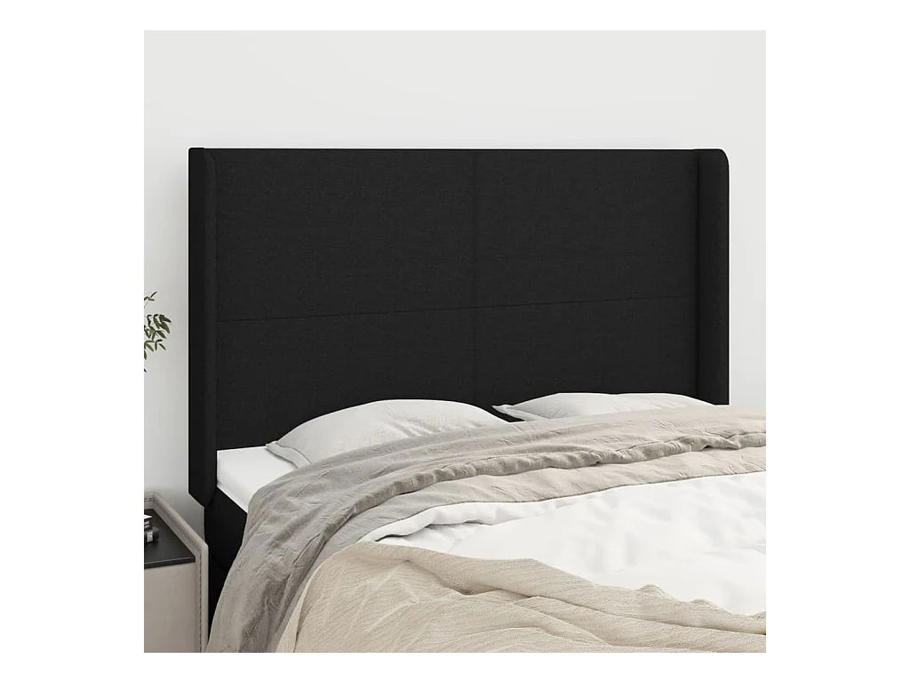 Tête de lit avec oreilles Noir 147x16x118/128 cm Tissu POI51597 BonneVie Meuble