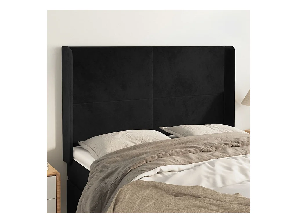 Tête de lit avec oreilles Noir 147x16x118/128 cm Velours