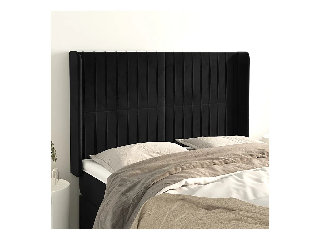 Tête de lit avec oreilles Noir 147x16x118/128 cm Velours