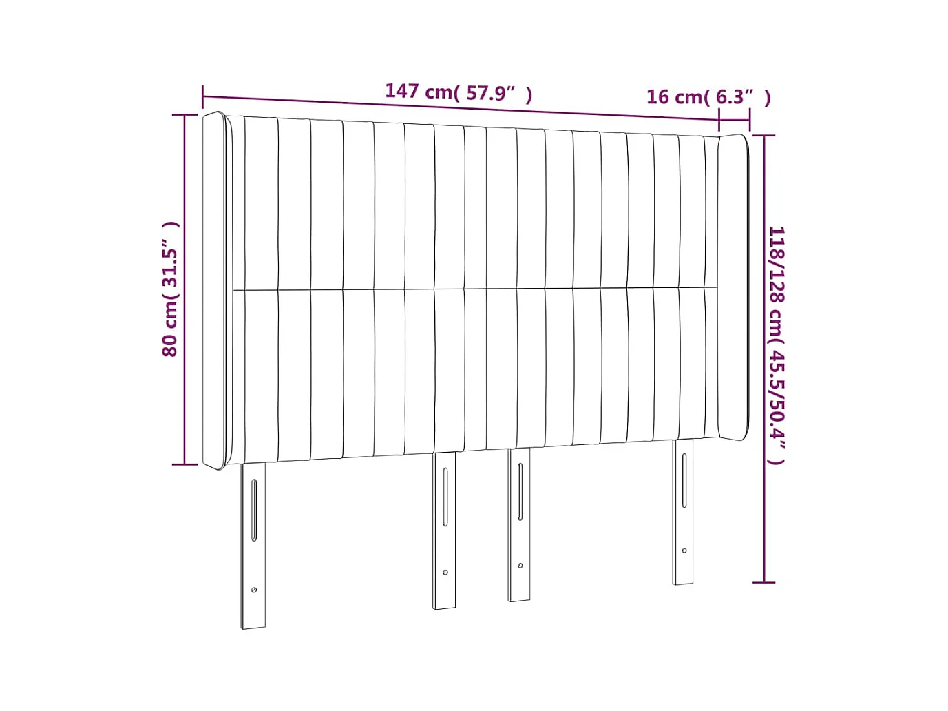 Tête de lit avec oreilles Noir 147x16x118/128 cm Tissu