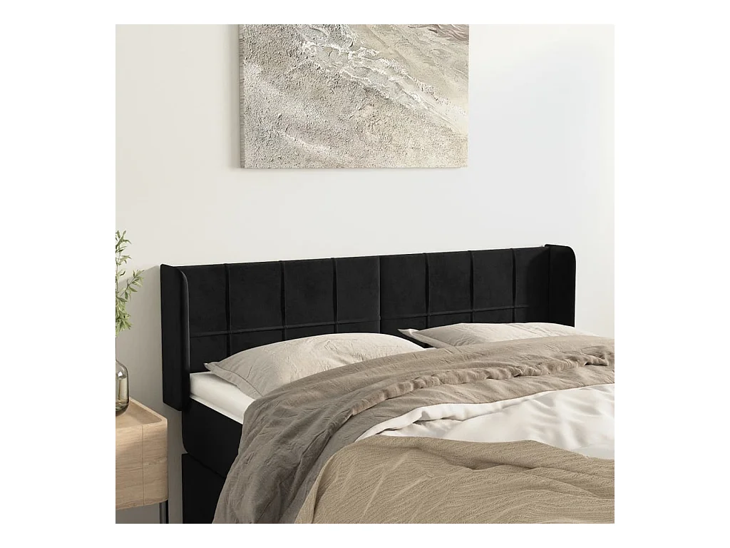 Tête de lit avec oreilles Noir 147x23x118/128 cm Velours