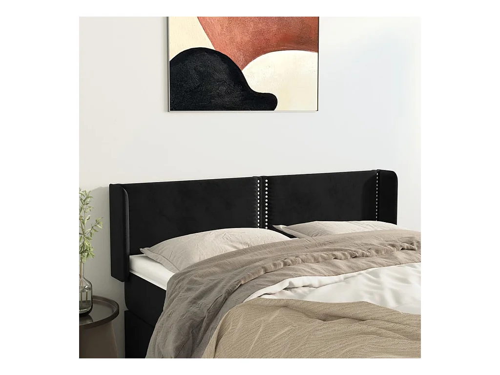Tête de lit avec oreilles Noir 147x16x78/88 cm Velours QED40285