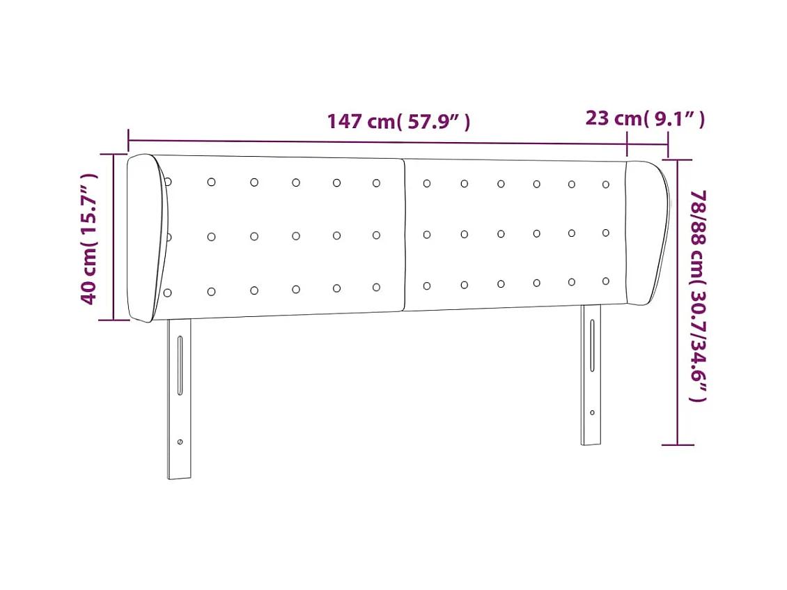Tête de lit avec oreilles Noir 147x23x78/88 cm Velours