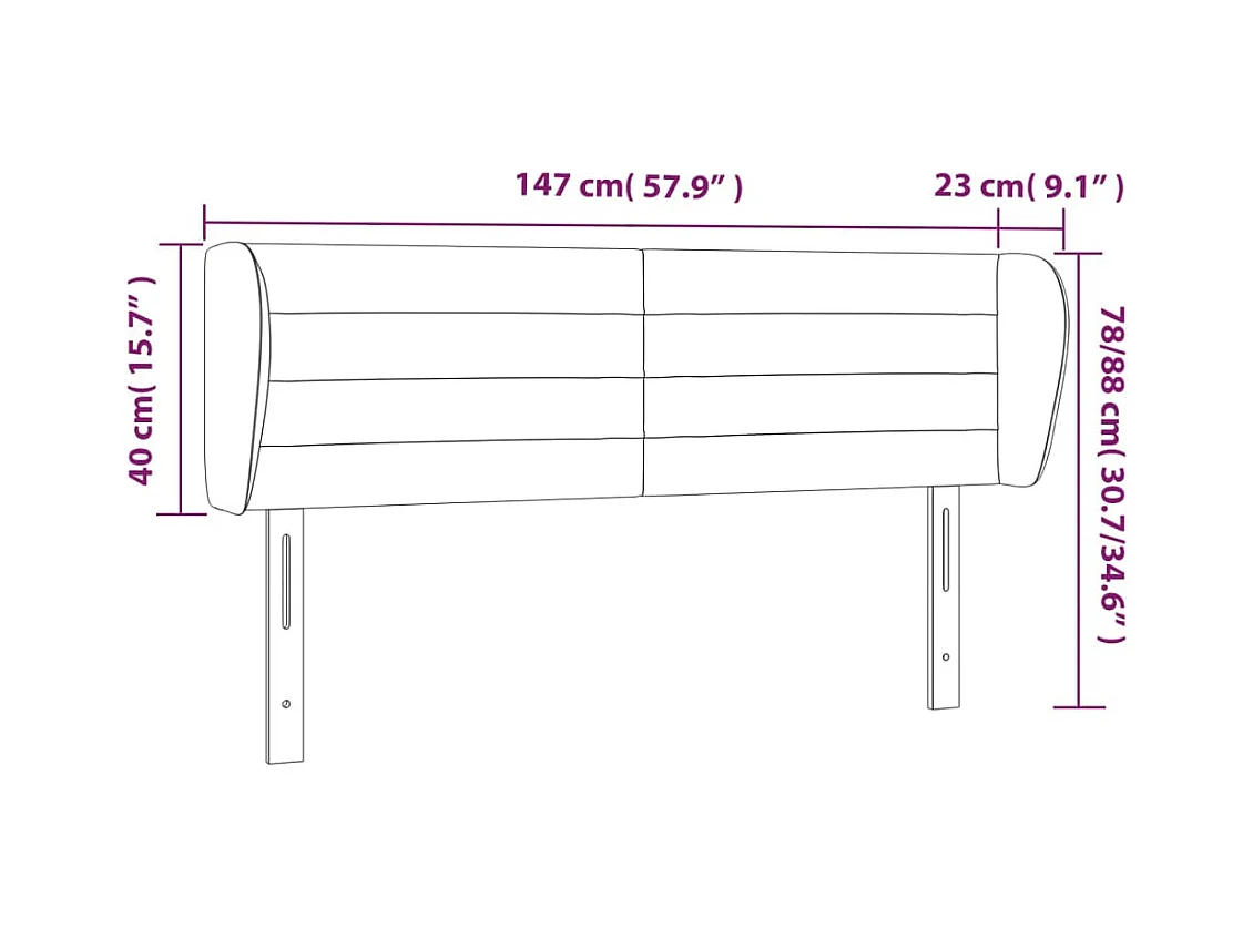 Tête de lit avec oreilles Noir 147x23x78/88 cm Tissu