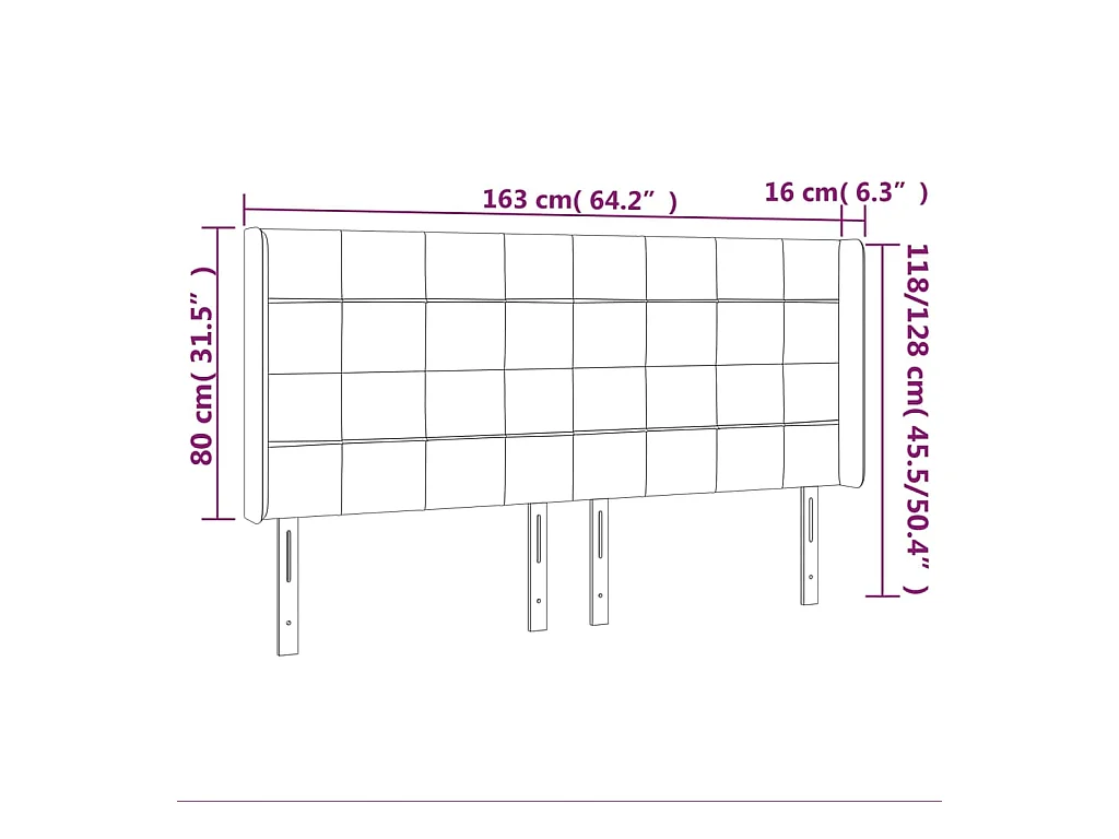 Tête de lit avec oreilles Noir 163x16x118/128 cm Tissu