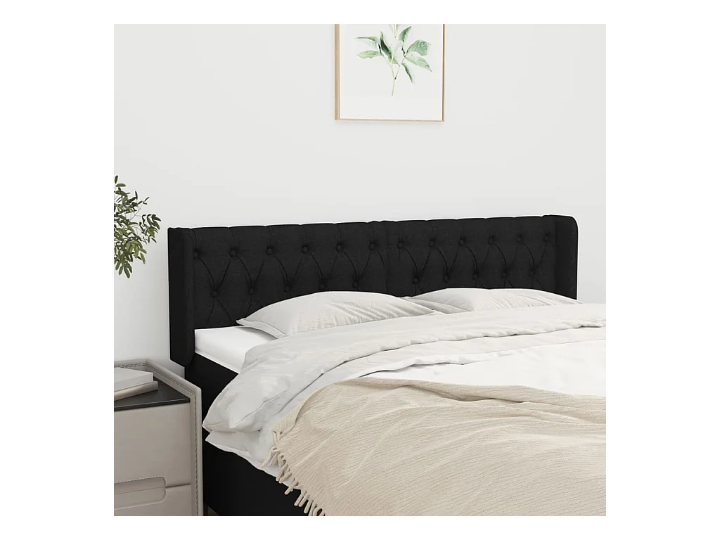 Tête de lit avec oreilles Noir 203x16x78/88 cm Tissu