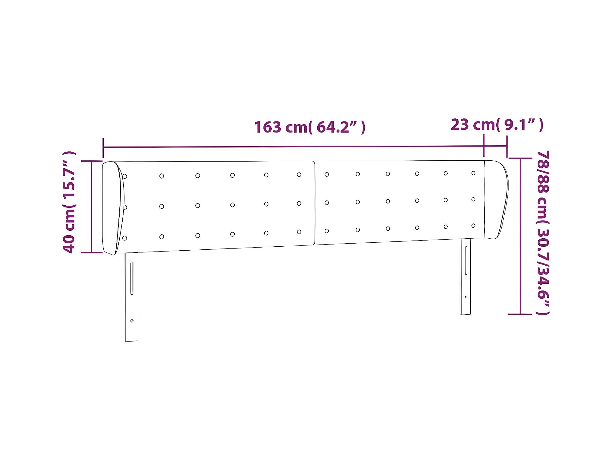 Tête de lit avec oreilles Noir 163x23x78/88 cm Velours