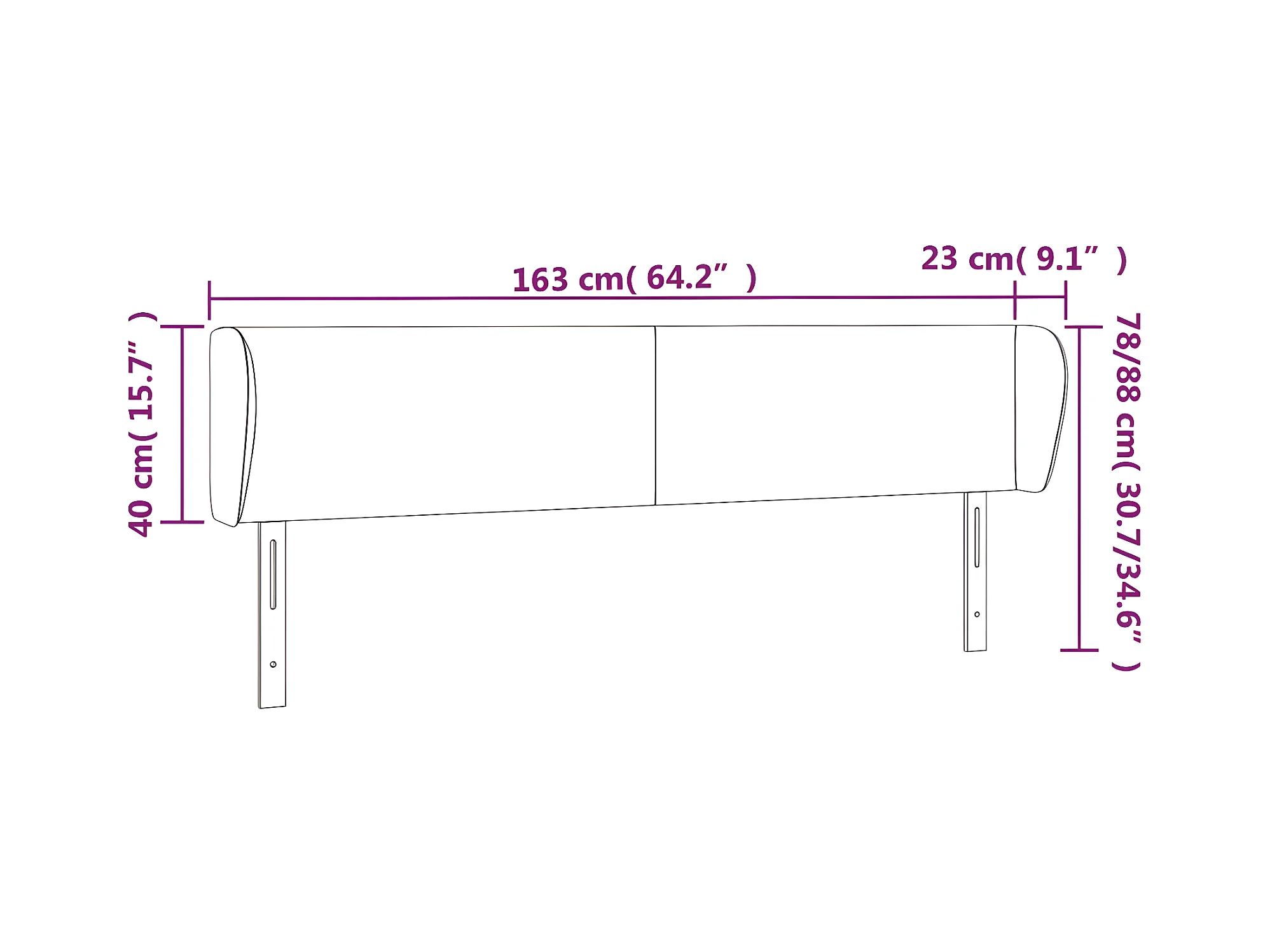 Tête de lit avec oreilles Noir 163x23x78/88 cm Velours