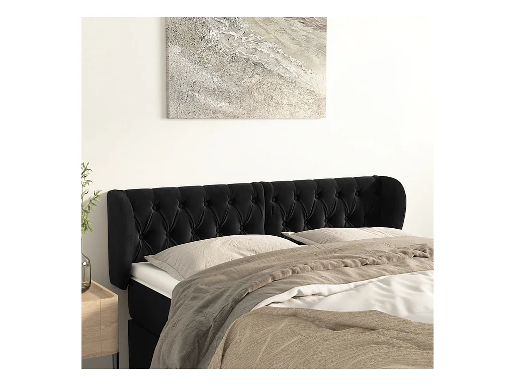 Tête de lit avec oreilles Noir 163x23x78/88 cm Velours