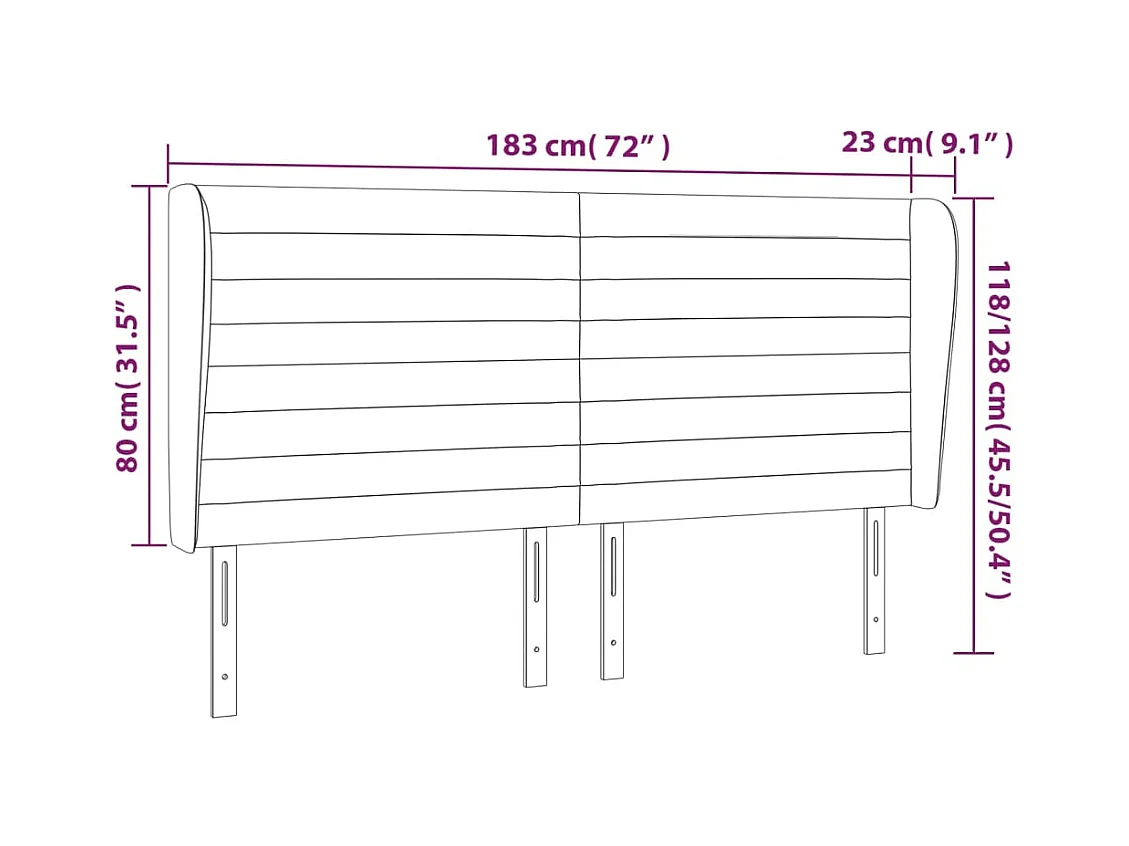 Tête de lit avec oreilles Noir 183x23x118/128 cm Velours
