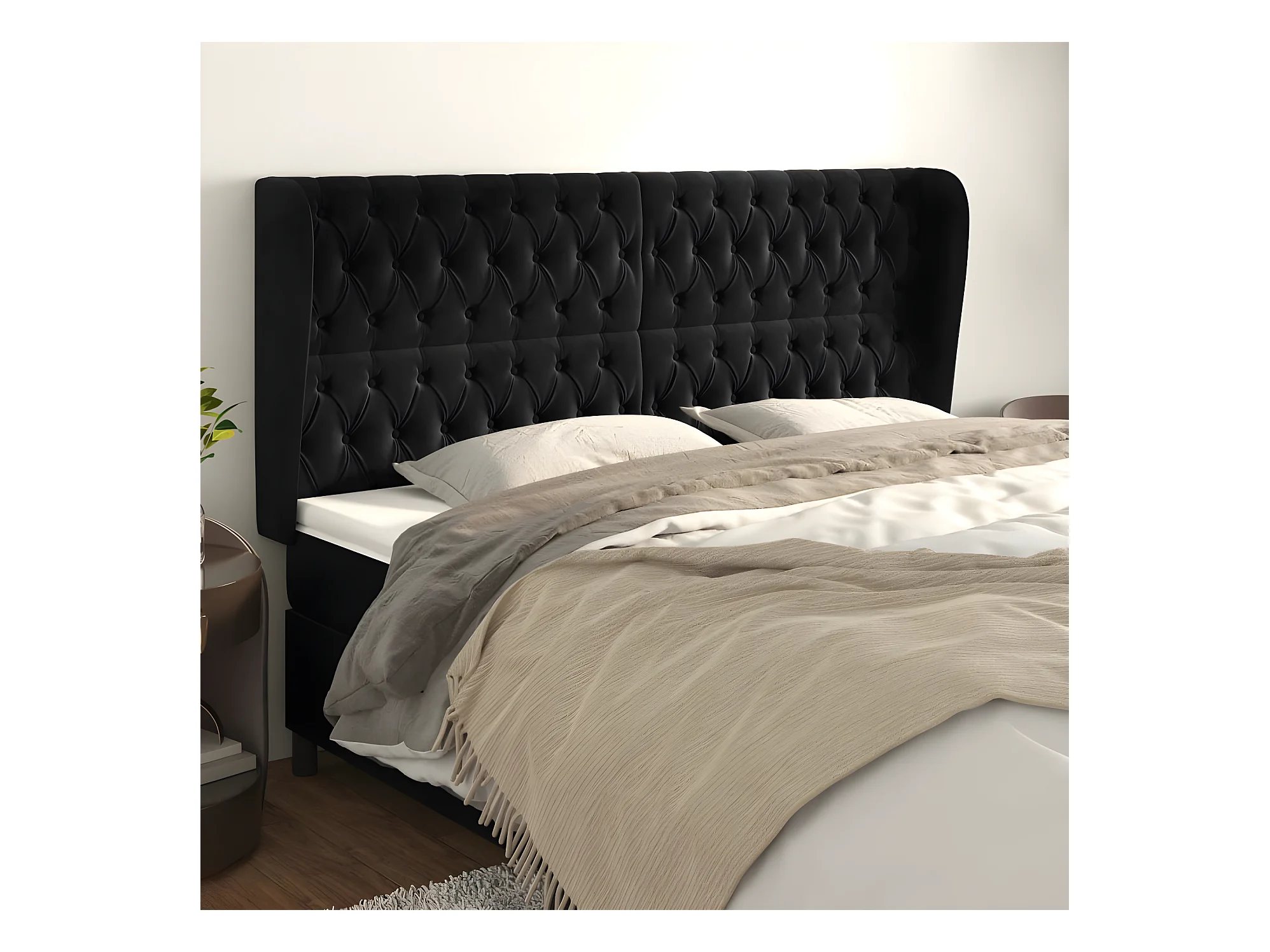 Tête de lit avec oreilles Noir 183x23x78/88 cm Velours