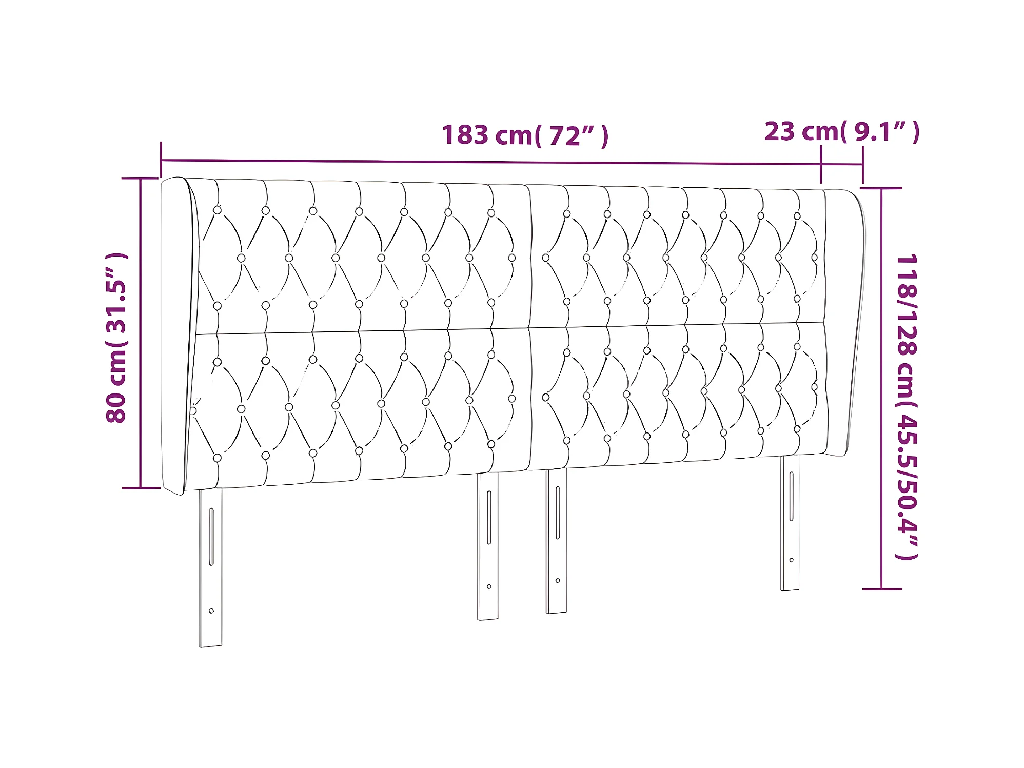 Tête de lit avec oreilles Noir 183x23x118/128 cm Velours