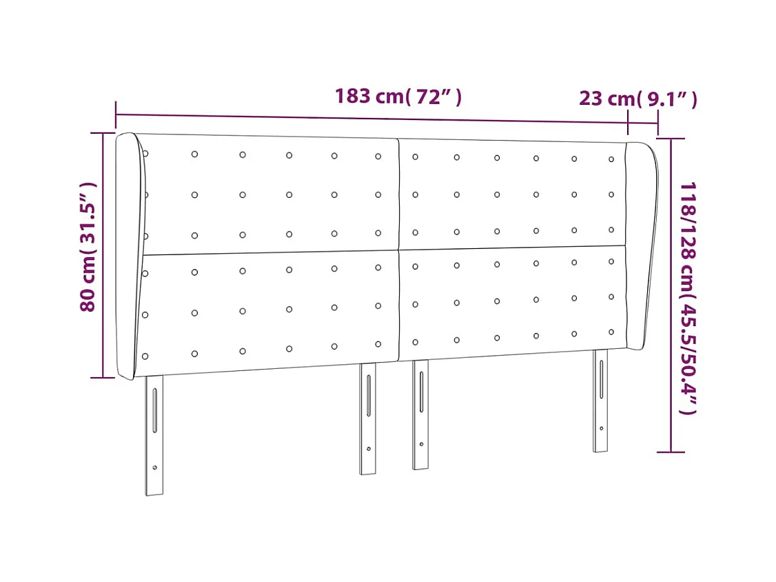 Tête de lit avec oreilles Noir 183x23x118-128 Similicuir