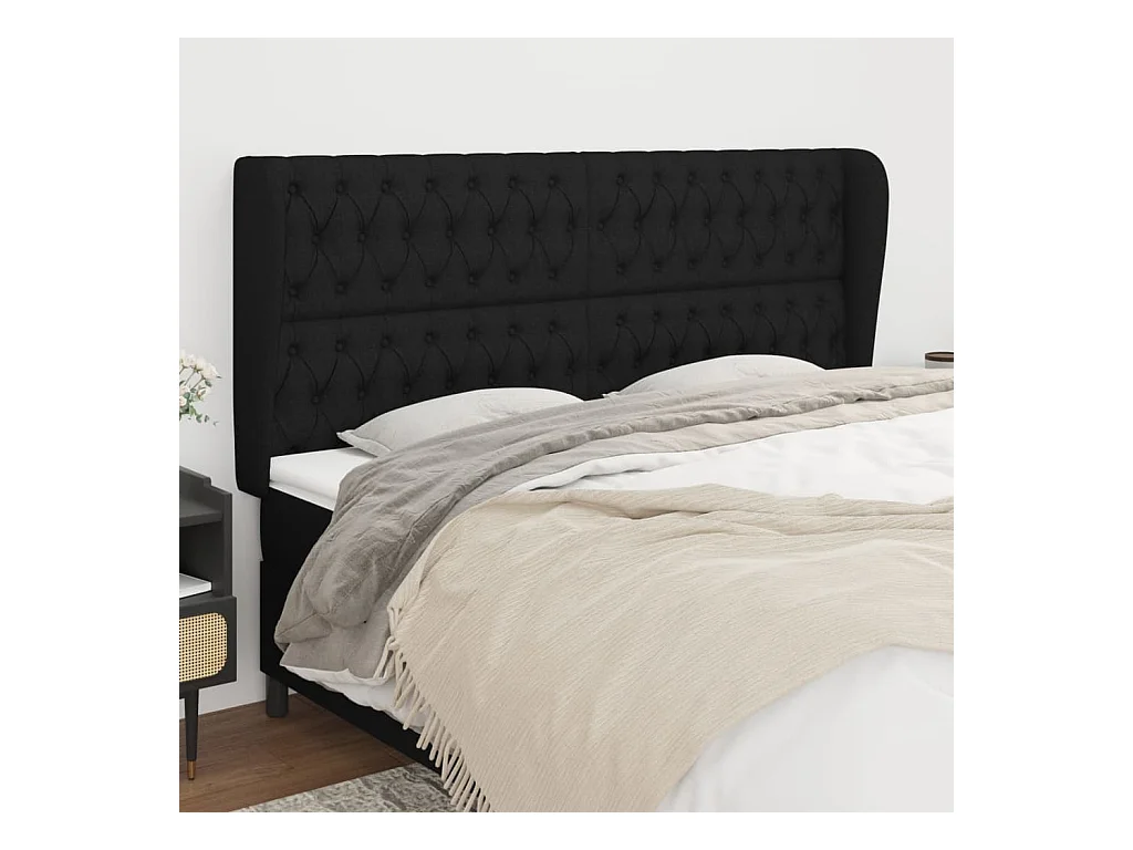 Tête de lit avec oreilles Noir 203x23x118/128 cm Tissu POI48461 BonneVie Meuble