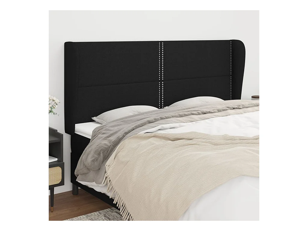 Tête de lit avec oreilles Noir 203x23x118/128 cm Tissu POI48461 BonneVie Meuble