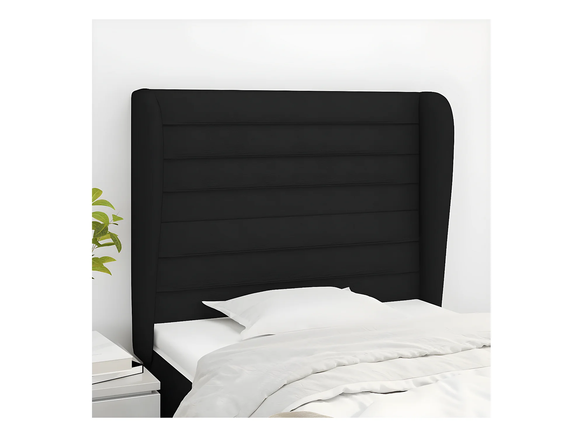 Tête de lit avec oreilles Noir 83x23x118/128 cm Tissu