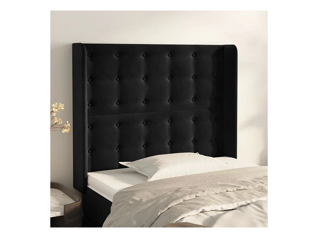 Tête de lit avec oreilles Noir 93x23x118/128 cm Velours