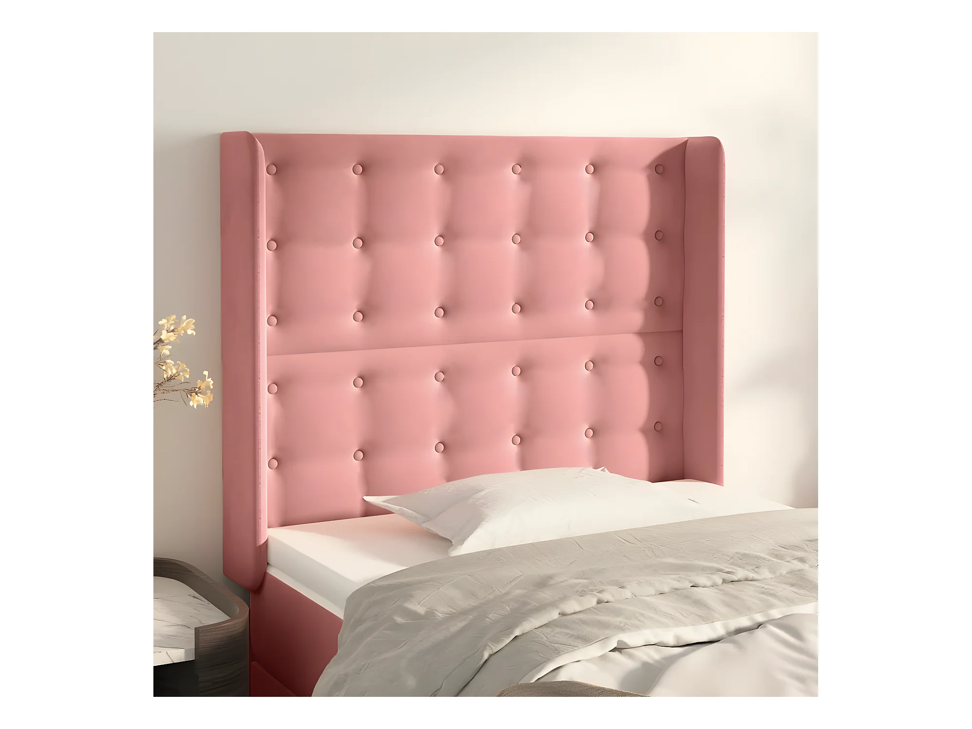 Tête de lit avec oreilles Rose 103x16x118/128 cm Velours