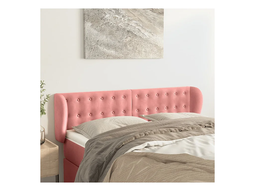 Tête de lit avec oreilles Rose 147x23x118/128 cm Velours POI17079 BonneVie Meuble