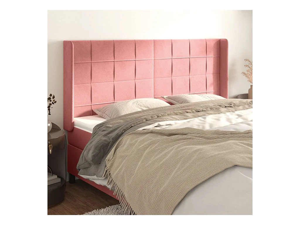 Tête de lit avec oreilles Rose 183x23x118/128 cm Velours