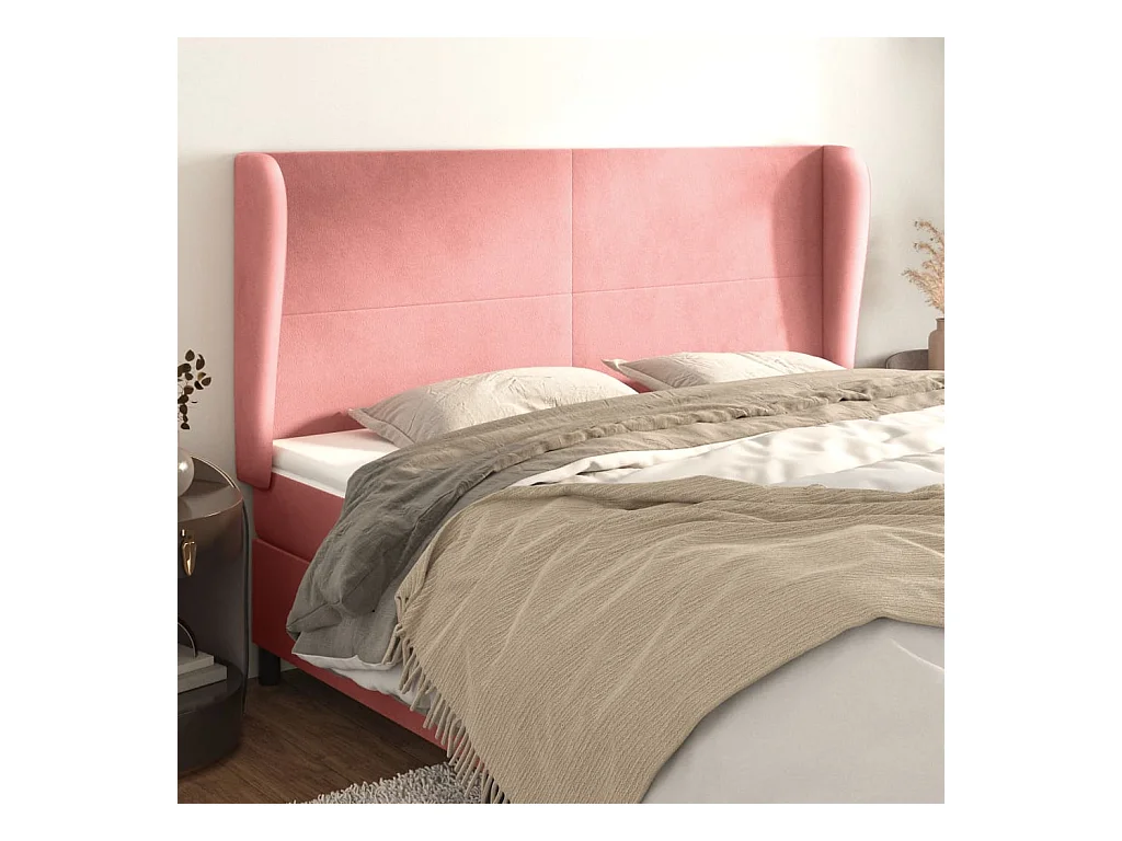 Tête de lit avec oreilles Rose 183x23x118/128 cm Velours POI26031 BonneVie Meuble