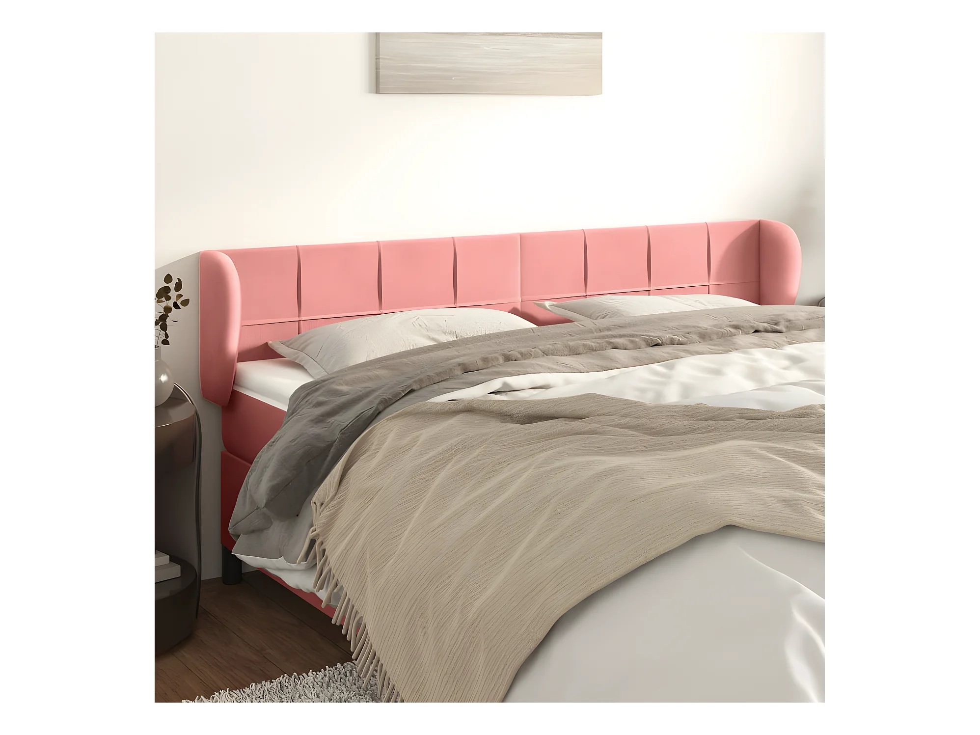 Tête de lit avec oreilles Rose 183x23x118/128 cm Velours