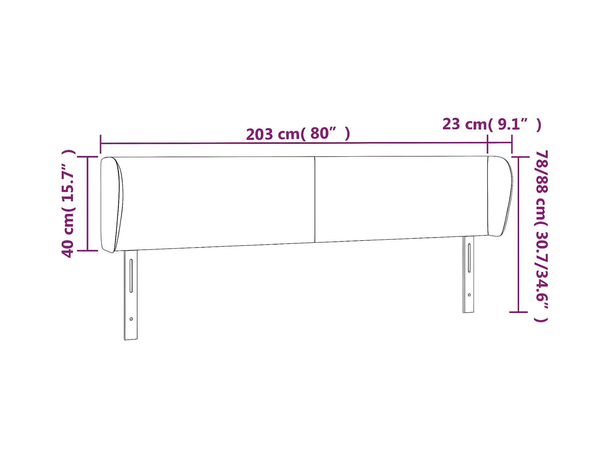 Tête de lit avec oreilles Rose 203x23x78/88 cm Velours